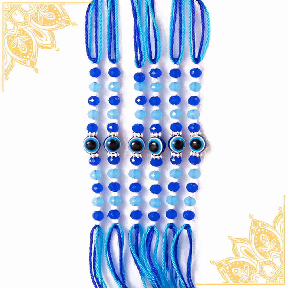 Protective evil eye symbolism, handcrafted with premium beads, elegant blue and turquoise design, traditional tie-up closure
