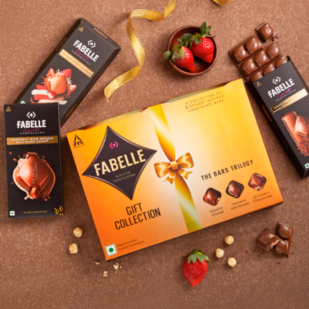 Premium handcrafted dessert-inspired bars, Luxurious center-filled chocolate trilogy, Elegant gift packaging for special moments