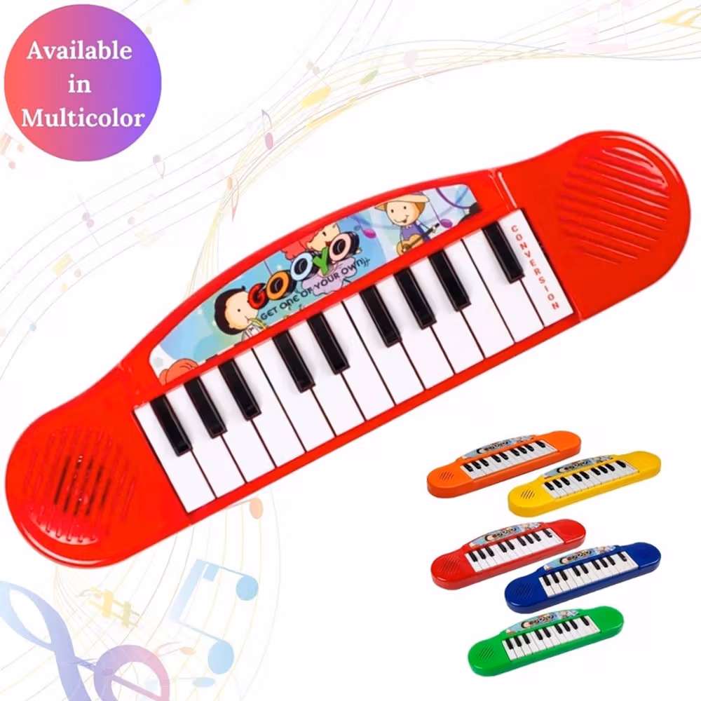 22 piano keys for realistic playing experience, built-in speaker for clear sound output, compact and lightweight design for portability