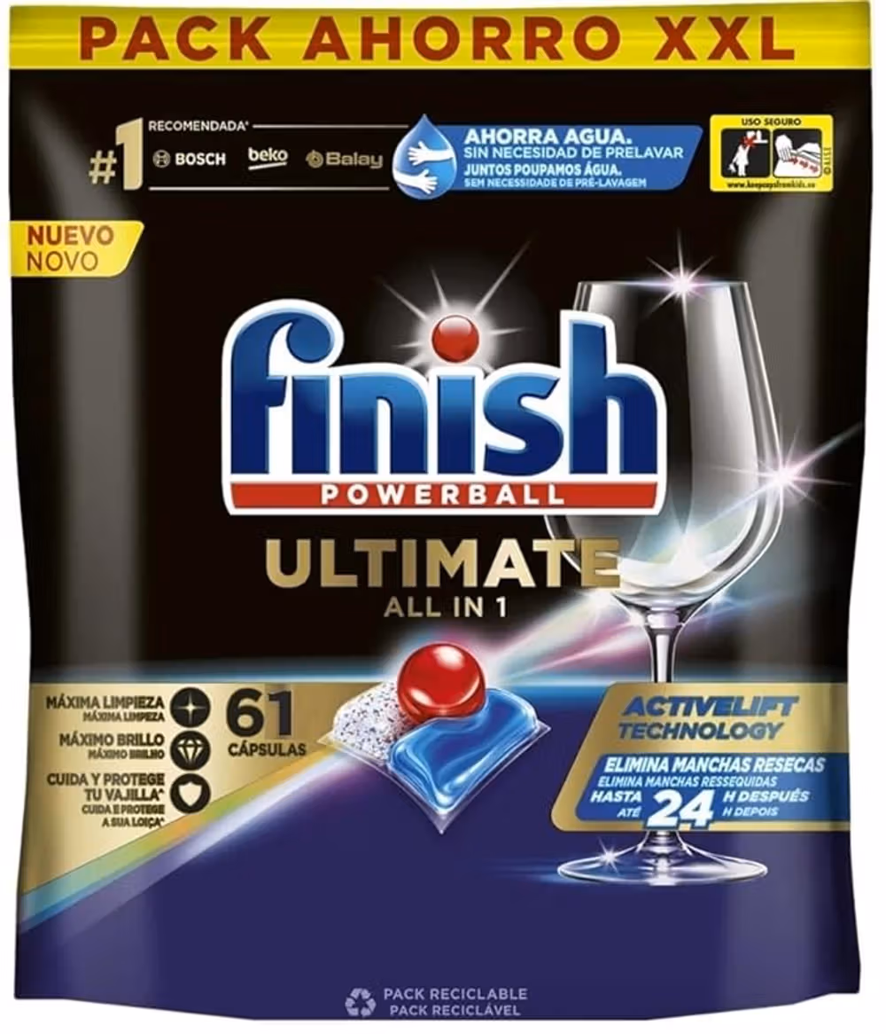 Powerful cleaning with pre-soaking, ensures sparkling results, grease cutting power, designed for dishwashers