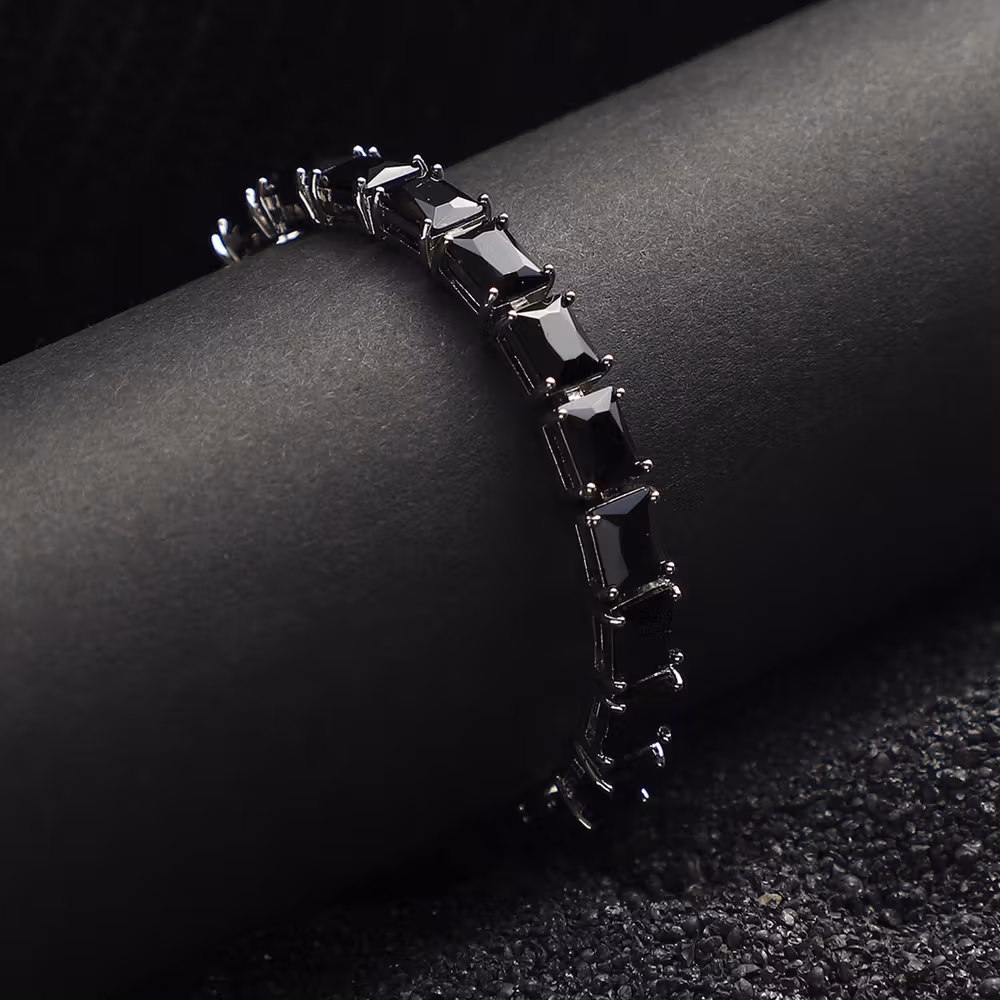 Premium geometric stone design, Durable alloy construction, Sophisticated interlock closure