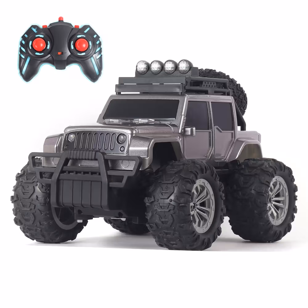 2.4GHz remote with 75ft range, Four dynamic headlight modes, Heavy-duty off-road tyres with smooth suspension, 60-minute runtime on full charge