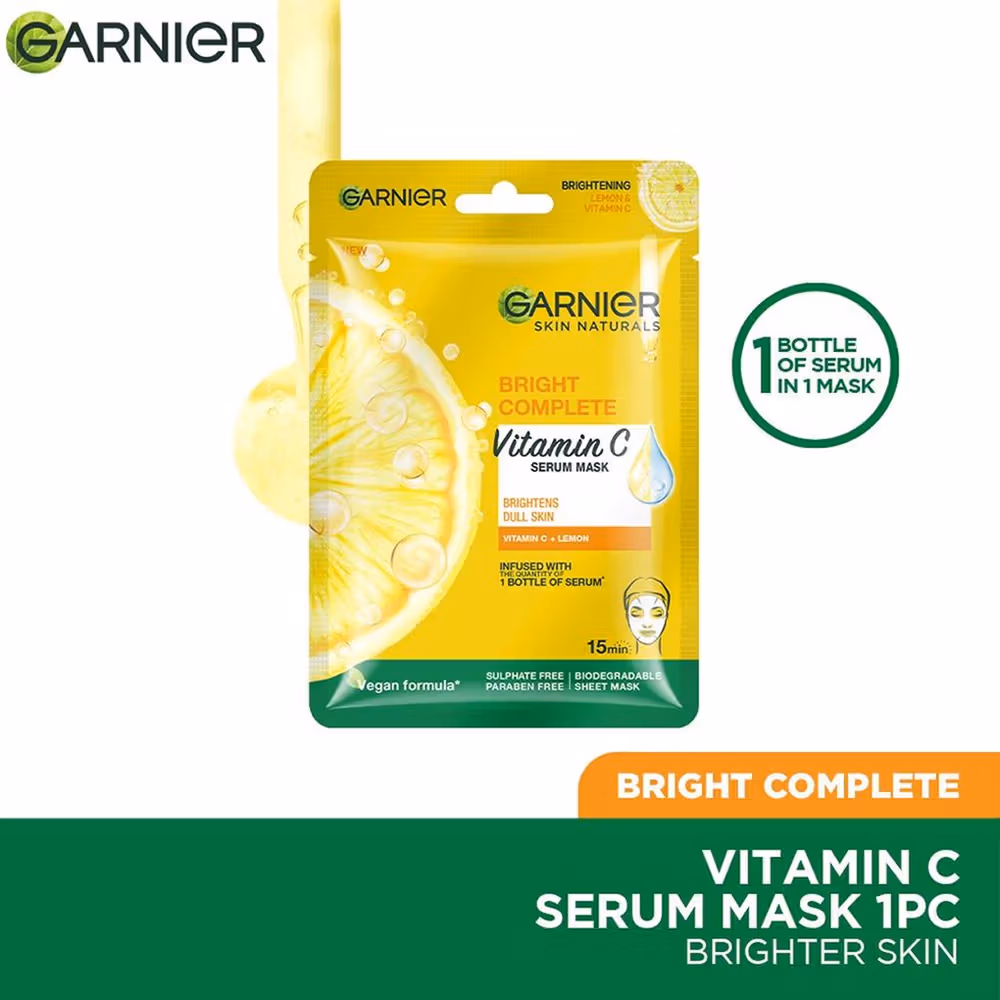 Infused with Vitamin C, brightens dull skin, hydrates and nourishes, biodegradable sheet