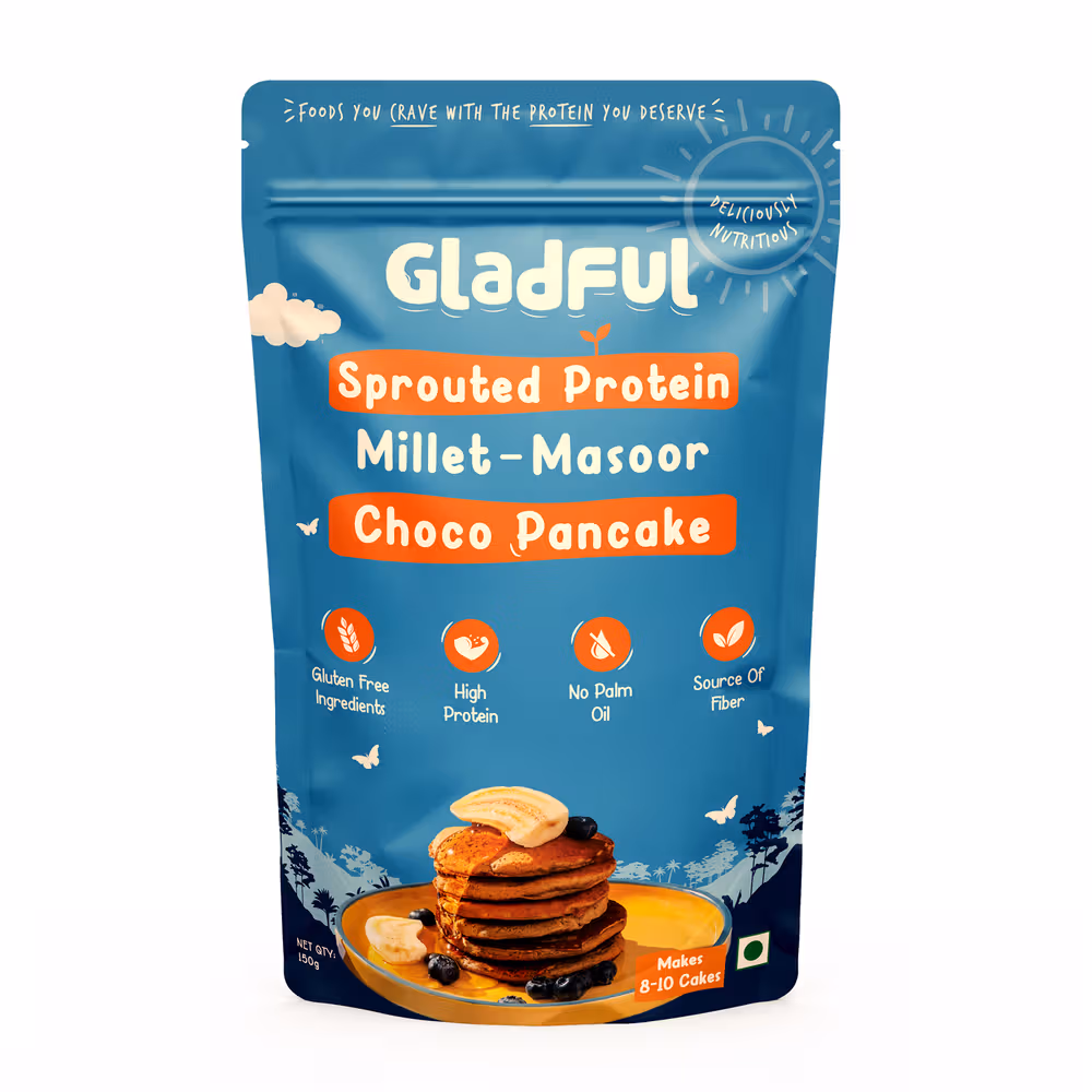 Sprouted Masoor, Foxtail Millet, Oats, Jawar, Banana, Chocolate, Raw Unrefined Cane Sugar, Vanilla, Baking Powder
