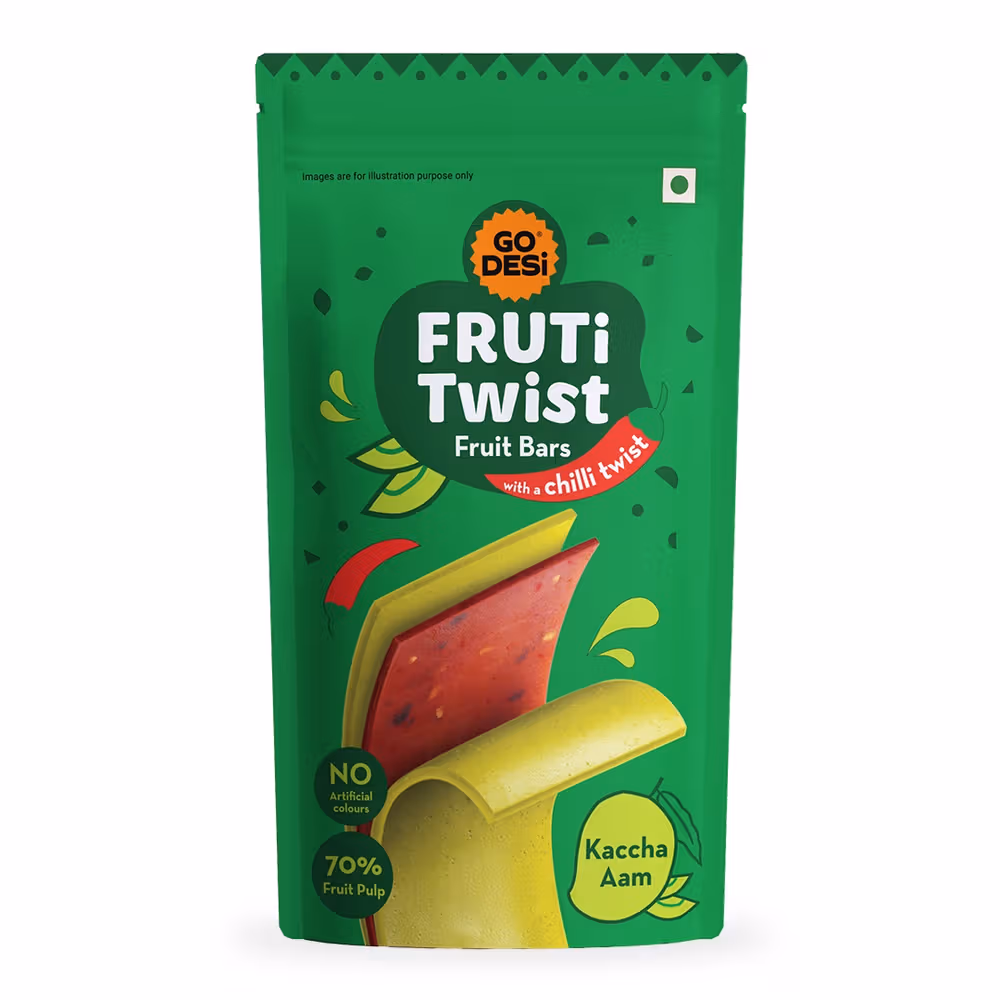 Three-layered fruit bar with spicy twist, made with 70% real fruit pulp content, natural ingredients with no preservatives