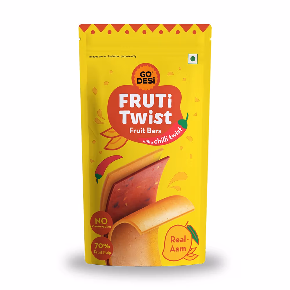 70% real fruit pulp for authentic flavor, no artificial colours or preservatives, three-layer bar with spicy chilli twist, perfect post-meal treat or lunchbox snack