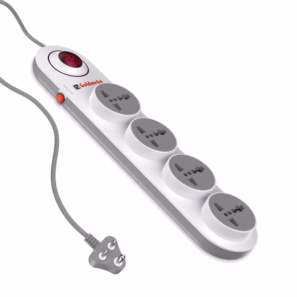 High-grade surge protection, 2-meter cable length, 4 international sockets, fire retardant plastic