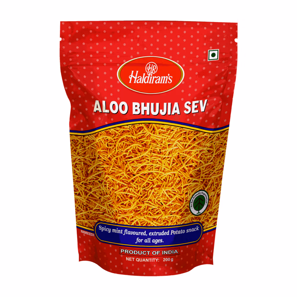 Potato, Refined Palmolein Oil, Bengal Gram Flour (Besan), Potato Flakes, Potato Starch, Tapioca Starch, Tepary Beans (Moth Dal) Flour, Iodised Salt, Red Chilli Powder, Black Salt, Acidity Regulator (INS 330), Black Pepper, Clove, Dried Ginger Powder, Dried Garlic Powder, Cumin Powder, Bay Leaf, Nutmeg, Cinnamon, Turmeric, Mint Leaves, Natural Flavouring Substances & Nature Identical Flavouring Substances