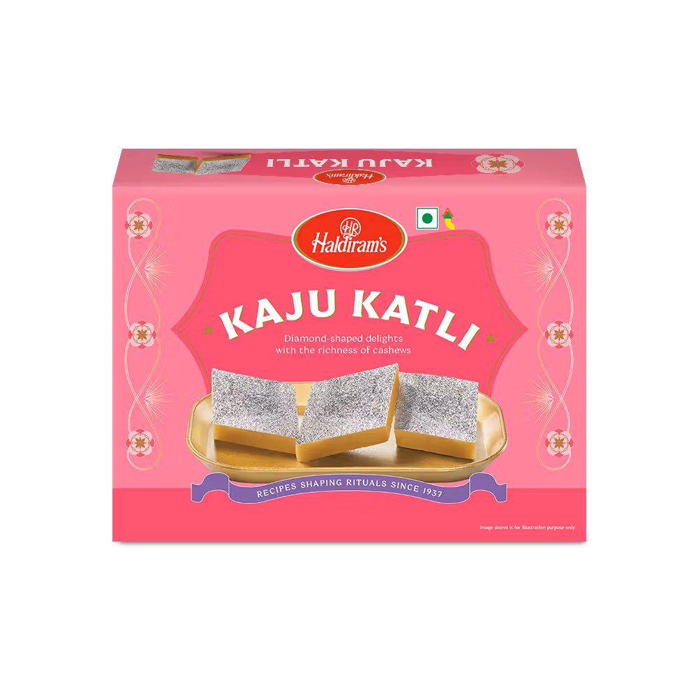 Haldiram Kaju Barfi is made with cashew nuts and the love of people. It is covered with a silver layer. People enjoy it with their family