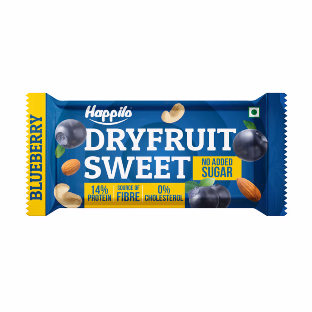 Cashews, Dates, California Almonds, Black Raisins, Blueberries, and Ragi Crispies