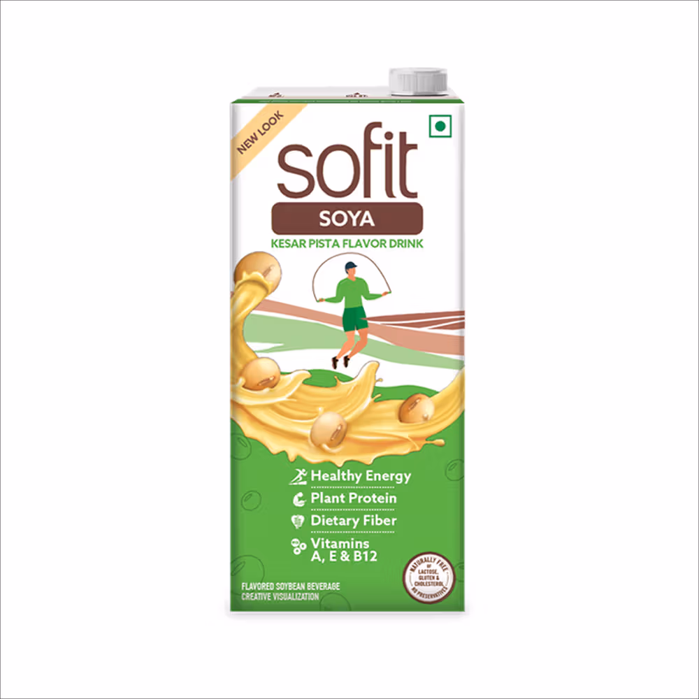 Purified Water and Soyabean(16.15%), Sugar, Mineral (Tricalcium phosphate), Emulsifier (460 (i),466), Edible common salt, Vitamin C (Ascorbic acid), Vitamin E (Acetate), Vitamin A (Acetate), Vitamin B1 (Thiamine mononitrate), Vitamin B2 (Riboflavin) and Vitamin B12 (Cyanocobalamin) CONTAINS ADDED FLAVOURS - NATURE IDENTICAL AND ARTIFICIAL FLAVORING SUBSTANCES (KESAR PISTA)