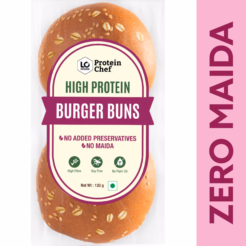 High protein with 14.2g per serving, 43% lower carbs than regular buns, preservative-free with no maida used