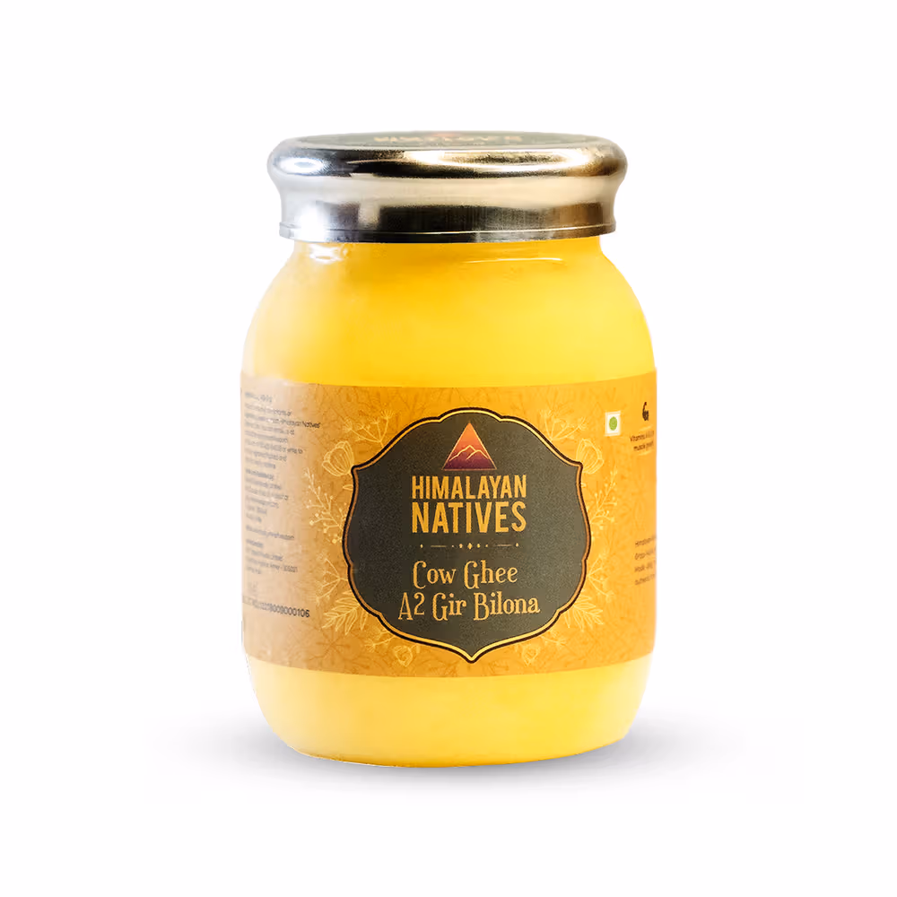 Made from A2 milk of Gir cows using the Bilona method, this ghee is rich in Omega-3 fatty acids and antioxidants, promoting immunity and overall health