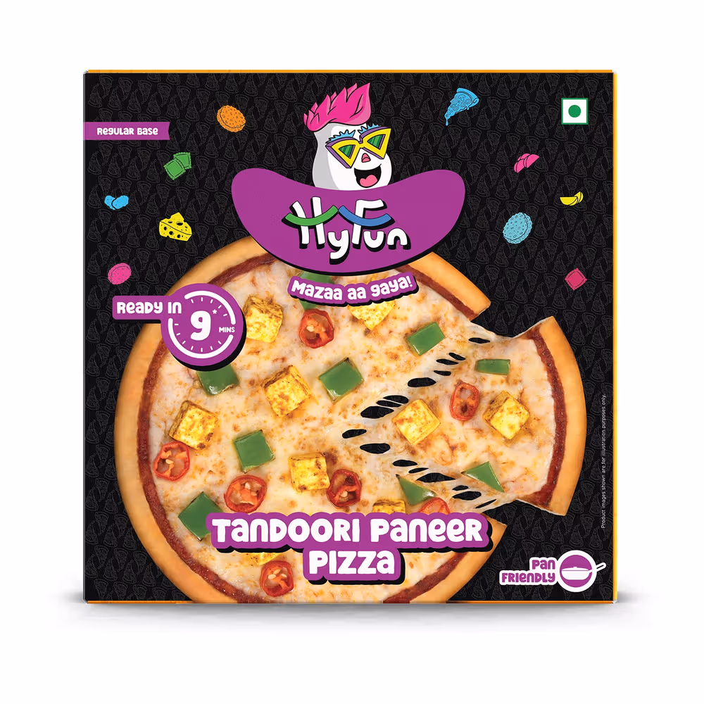 OTG/Oven: Preheat oven at 200°C - 230°C. Unpack frozen pizza, remove shrink film, and transfer directly to preheated oven. Ensure the pizza is positioned in the centre of the oven. Bake for approximately 9 - 11 minutes until the crust becomes golden brown and cheese melts. Remove and serve. Air Fryer: Set temperature at 200°C and preheat for 4 - 5 minutes. Unpack frozen pizza, remove shrink film, and transfer into fryer (cut into 2 halves and place 1 piece to ensure proper airflow). Cook for approximately 4 - 5 minutes until the crust becomes golden brown and cheese melts. Remove and serve. Pan: Method 1: Preheat non-stick pan for 2 minutes on the lowest flame of the gas burner. Place frozen pizza in the pan and cover with a lid. Cook on low flame for 12 - 14 minutes or until cheese melts. Remove and serve. Method 2: Thaw (keep outside the refrigerator) the pizza for 30 minutes. Preheat non-stick pan for 2 minutes on the lowest flame of the gas burner. Place the thawed pizza in the pan and cover with a lid. Cook on low flame for 8 - 10 minutes or until cheese melts. Remove and serve
