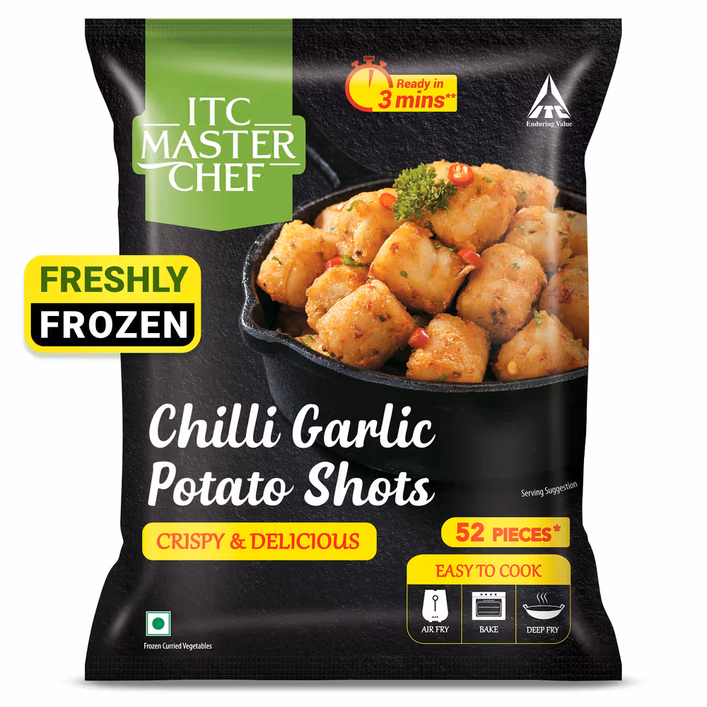 Potato (85.4%), Refined Palmolein, Starch, Garlic Paste (2.1%) [Garlic (1.3%), Water, Vinegar, and Dextrose], Dehydrated Potato, Iodised Salt, Red Chilli (0.32%), and Onion Powder