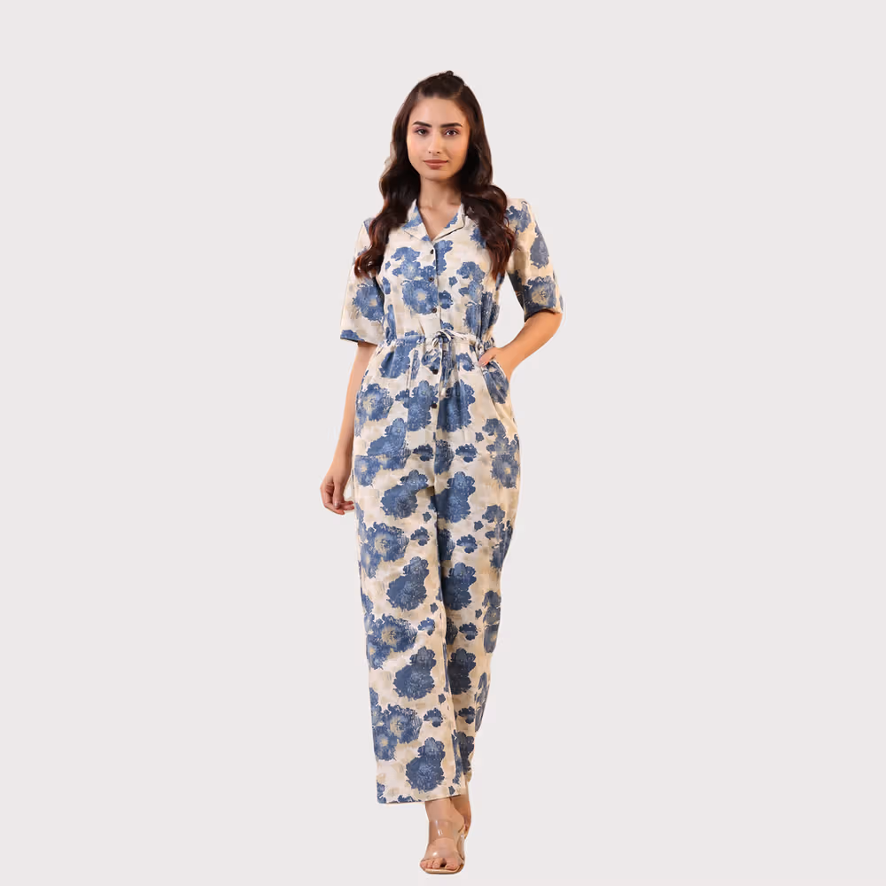 Printed cotton flex fabric, relaxed fit design, three-fourth sleeves, includes belt for perfect fit