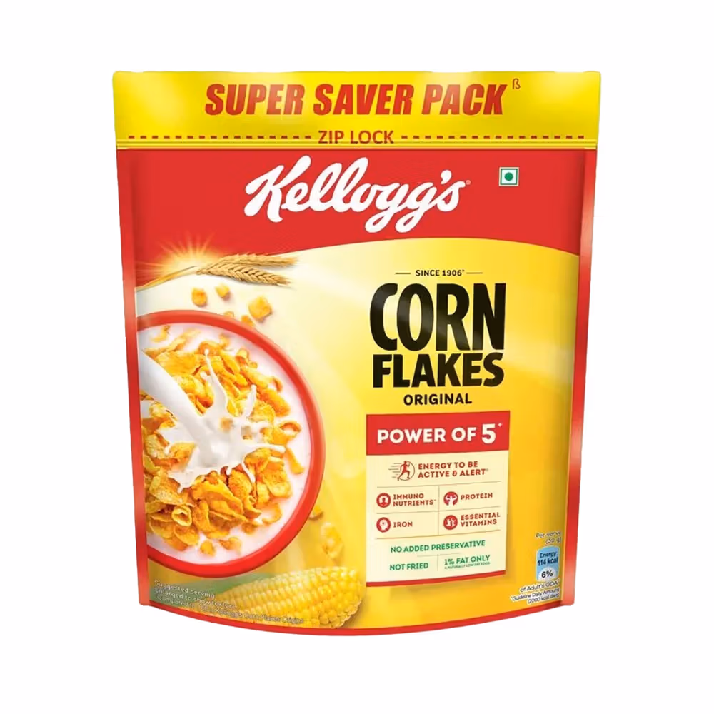 Corn Flakes Original is a nourishing breakfast cereal at its very best. Every bite of these crunchy, golden flakes is just as delicious as the first. It is prepared from corn and enriched with iron and 8 essential vitamins