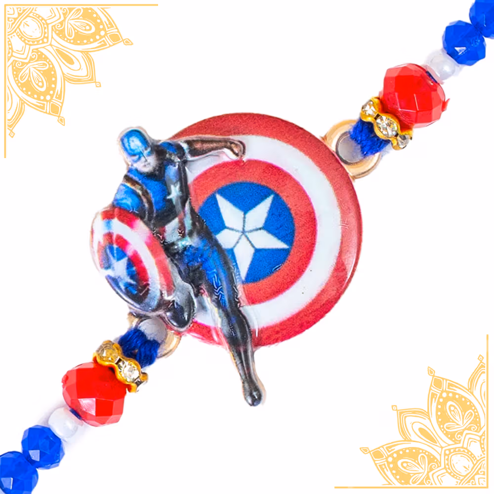 Superhero-themed Captain America design, multi-coloured bands with tiny beads, perfect gift for Marvel fans, ideal for kids' celebrations