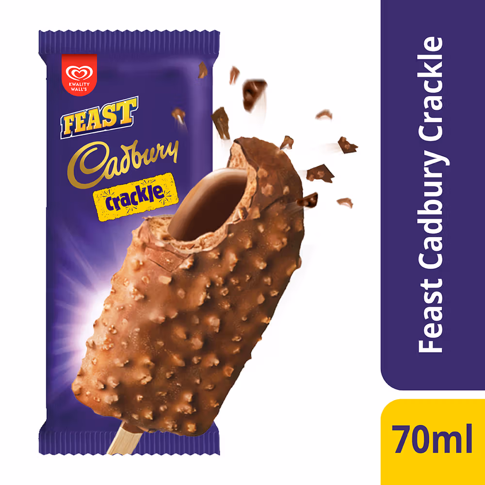 Creamy frozen dessert, crunchy Cadbury chocolate bits, perfect for on-the-go indulgence, ideal for hot days
