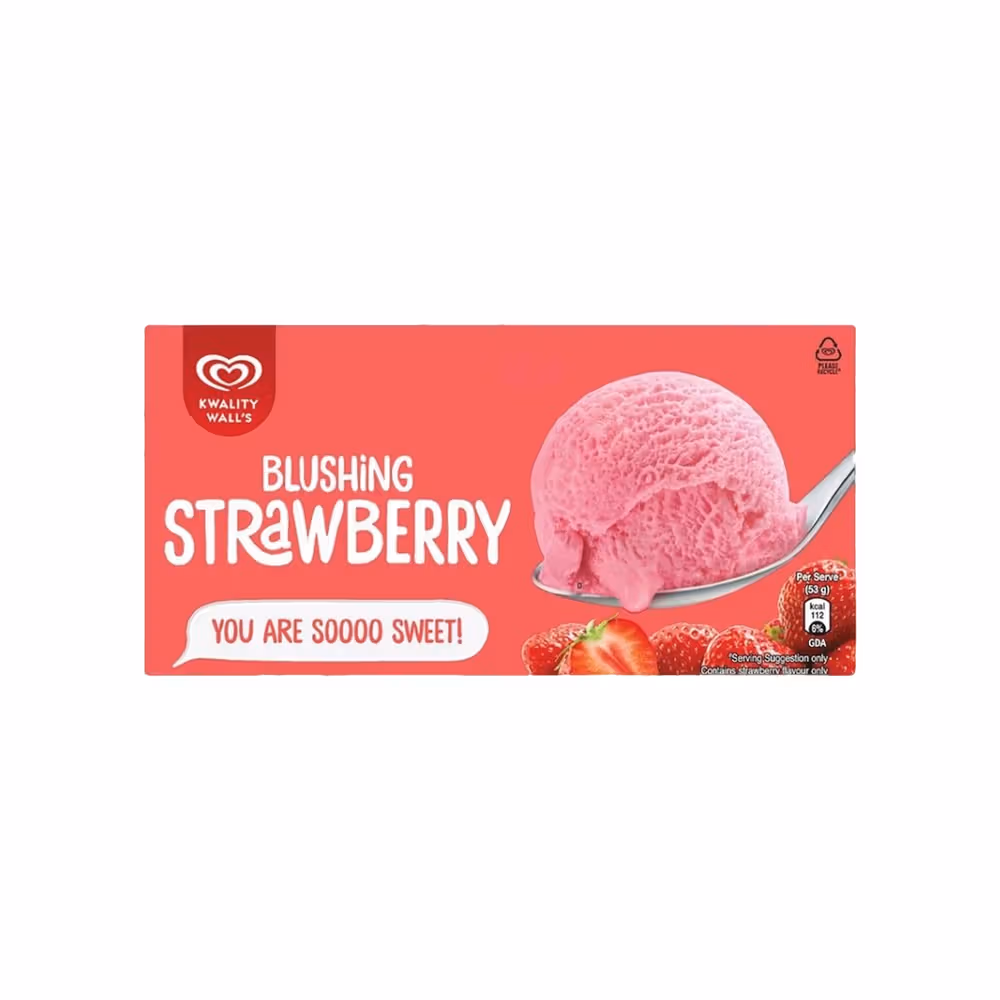 Water, Sugar, Palm Oil, Milk Solids, Liquid Glucose, Vegetable Protein (Soy), Emulsifier - E471, Stabilisers - E410, E412, E407, Acidity Regulator - E330, Permitted Synthetic Food Colour - E127, Added Flavours - Nature Identical and Artificial Strawberry and Milk Flavouring Substances