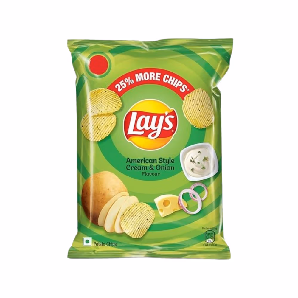 American Style Cream & Onion flavor, made from quality potatoes, versatile snack for any occasion, 100% vegetarian