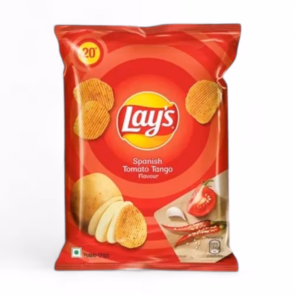Tangy Spanish Tomato Tango flavor, made from quality potatoes, 100% vegetarian snack, perfect for any occasion