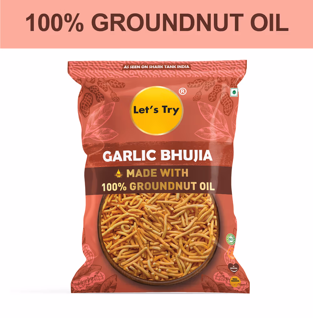 Made with 100% groundnut oil, infused with garlic flavor, crispy and crunchy texture, perfect for snacking