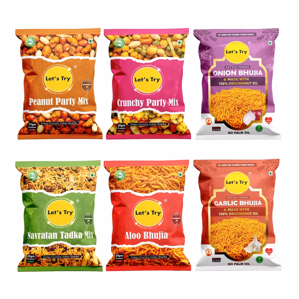 Includes 6 unique snack varieties, made with 100% groundnut oil, no palm oil used, perfect for parties and gatherings