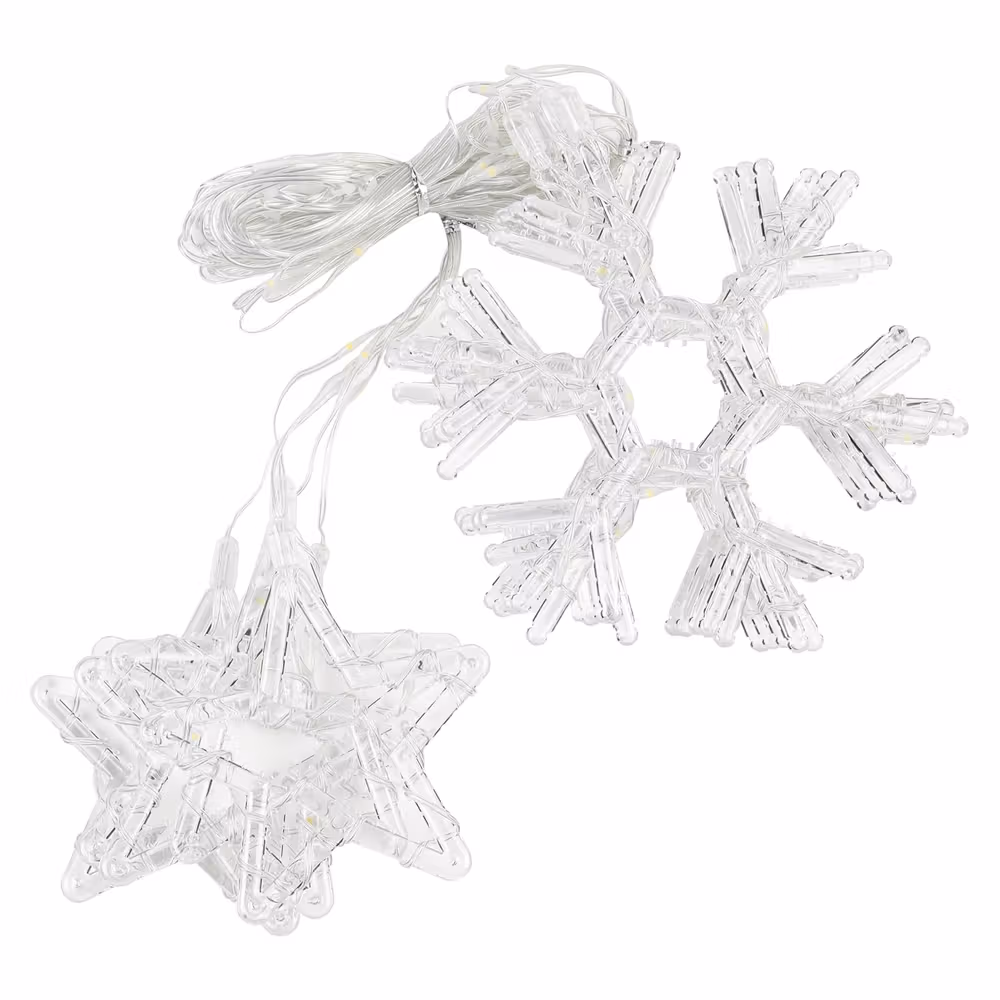 Elegant star and snowflake design, 8 flickering modes for ambiance, easy plug-in installation, perfect for festive decor