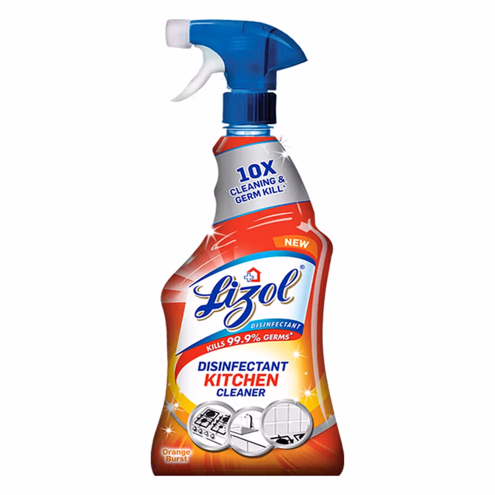 Kills 99.9% of germs, removes food stains easily, suitable for kitchen surfaces, fresh orange scent