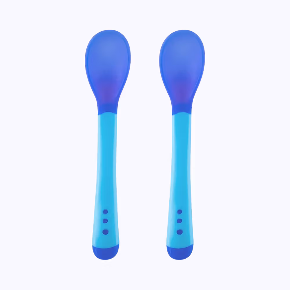Heat-sensitive spoon set, soft silicone tip, BPA-free material, ergonomic handle design