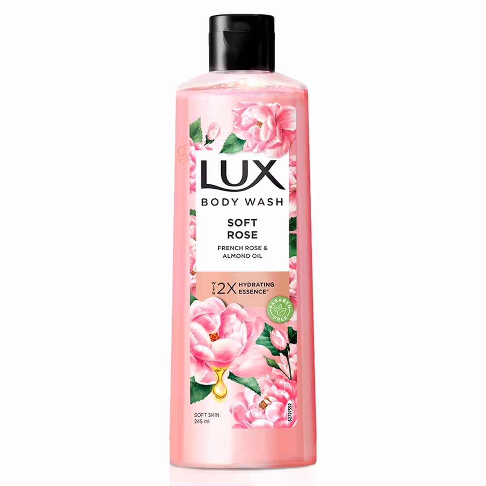 French rose and almond oil, skin feels soft and glowing, luxurious foam, paraben free