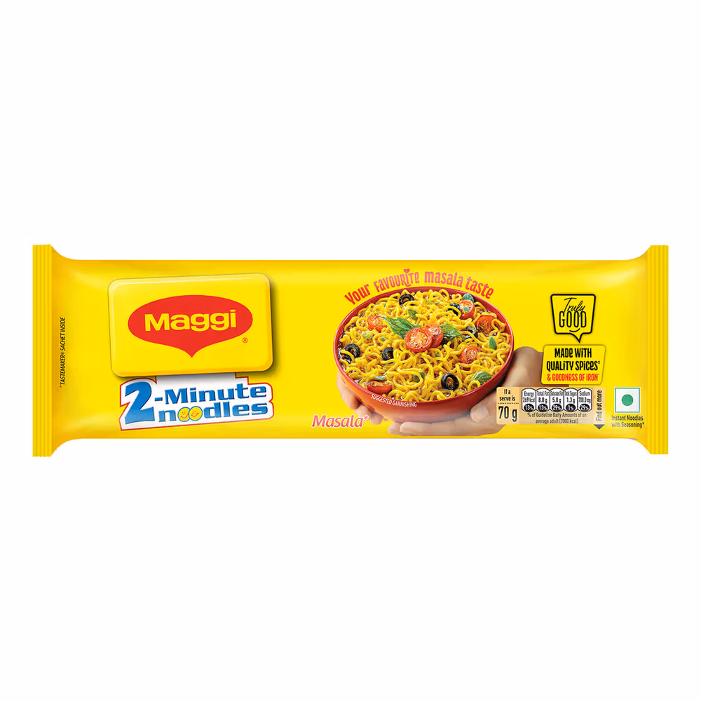 Relish your favorite masala taste with MAGGI 2 minute instant noodles. Each serving (70 g) provides 15% of the daily iron requirement. Made with the choicest quality spices. Easy to prepare