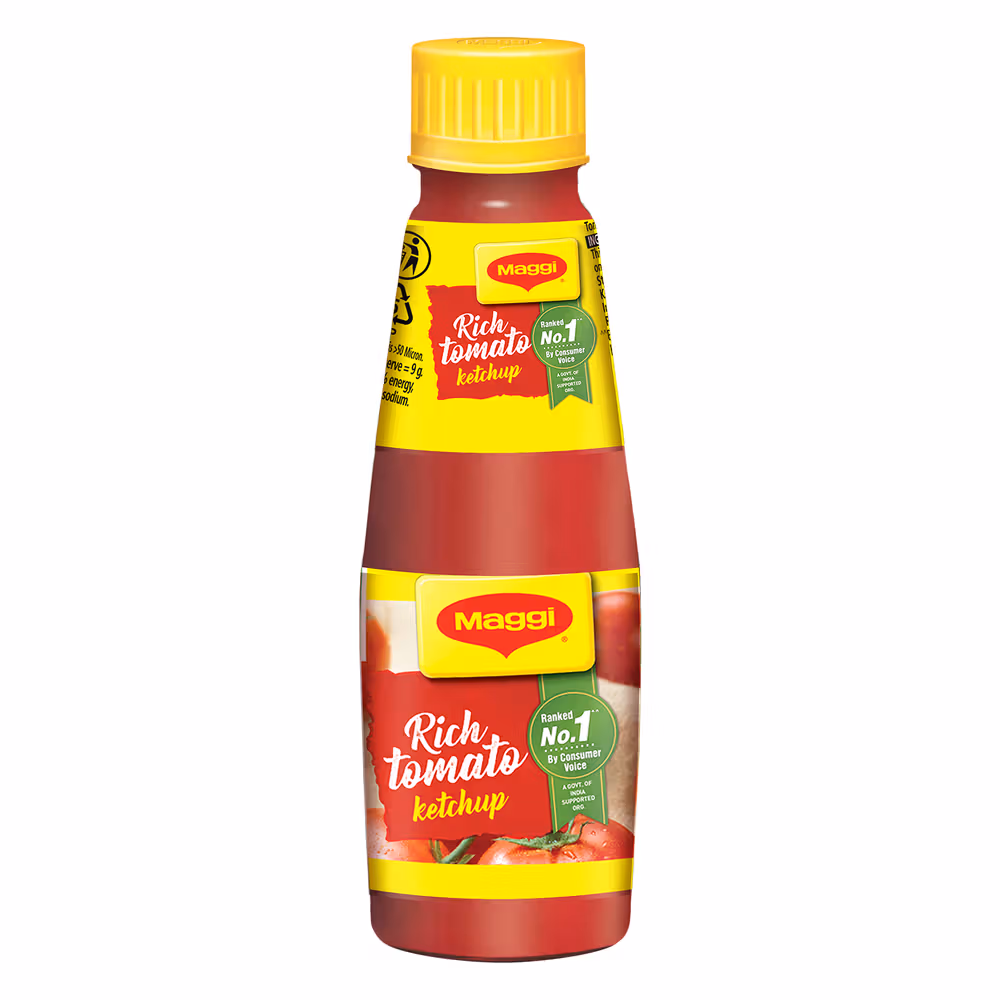 Treat yourself to the unique taste of Nestle Maggi Rich Tomato Ketchup. This is made with juicy tomatoes. Favorite condiment of every Indian household. This comes in glass packaging to retain taste
