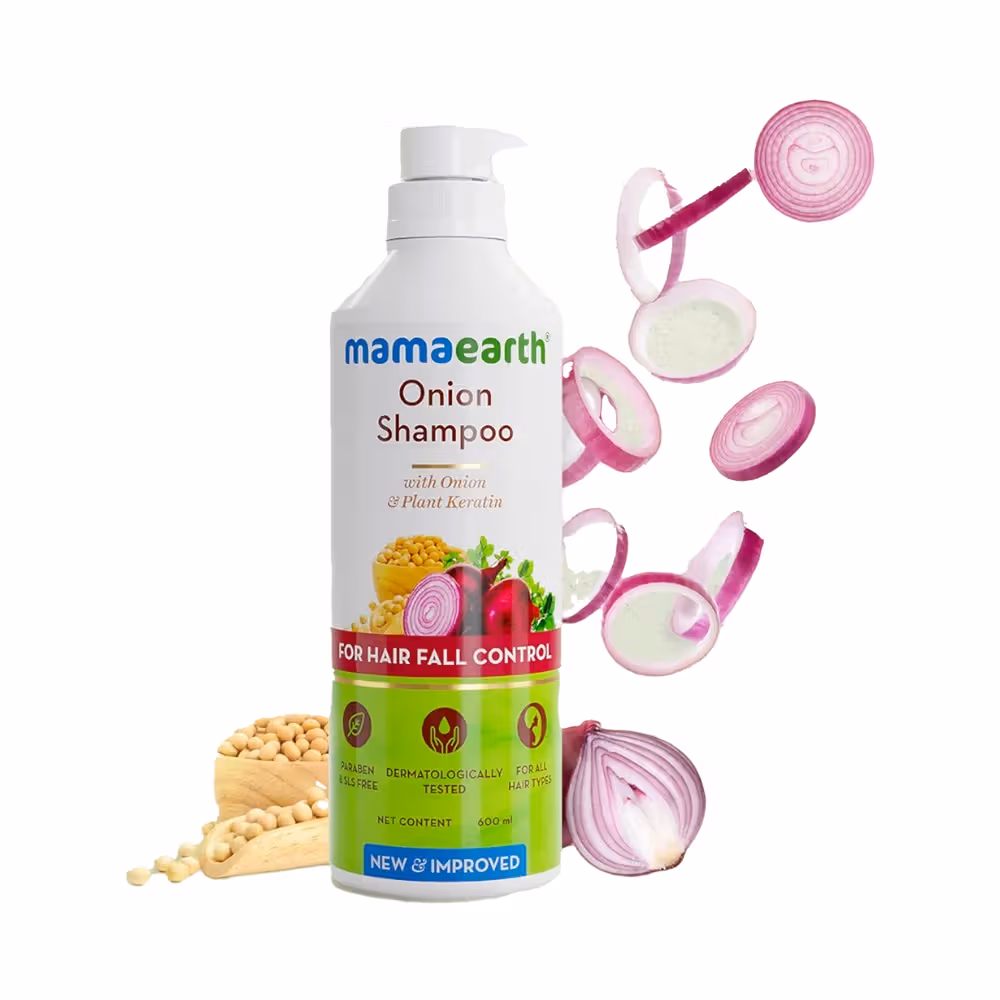 Reduces hair fall with onion oil, Strengthens with plant keratin, gentle cleansing formula