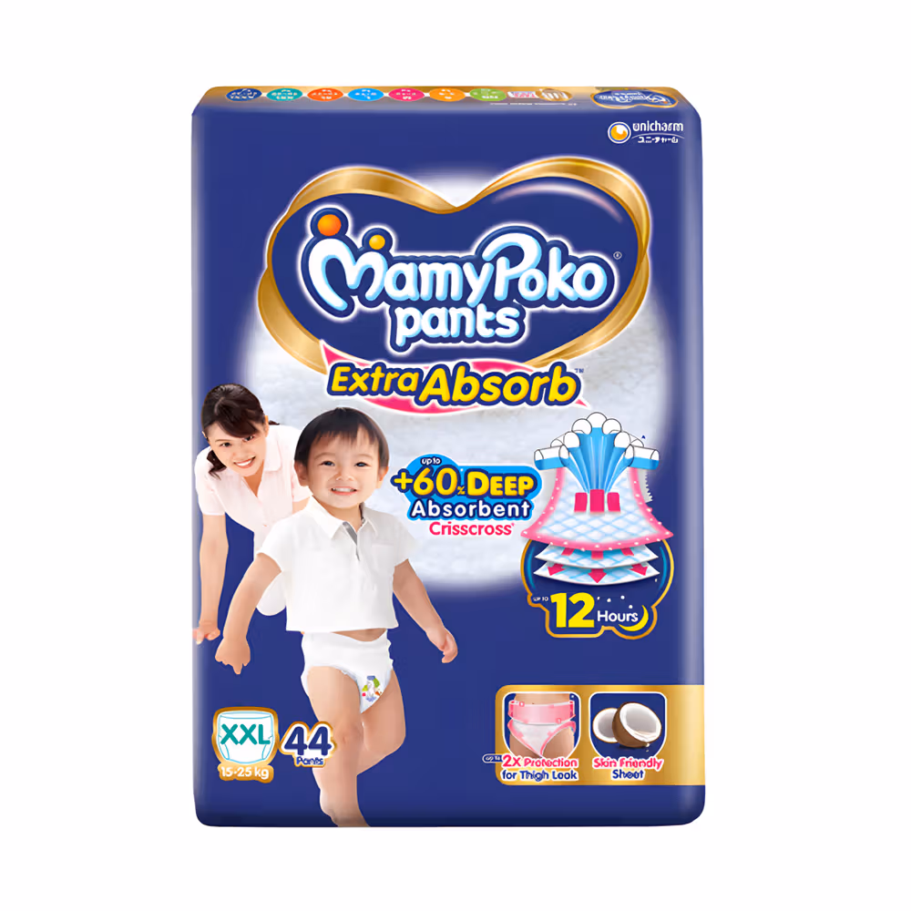 Our first deep sleep diaper which helps in deep and better quality sleep for babies. deep absorbent crisscross sheet: 3 layer deep absorption leaves no wetness on the topsheet, and no heaviness on bottom, so prevents leakage without sogginess for upto 12 hours. no sogginess: keeps baby's gentle skin dry. innovative flexi fit - the waistband is made of premium and soft non woven stretchy material that adjusts gently and fits perfectly across baby's tummy, preventing red marks. 2x protection from thigh leakage: perfect fit helps the diaper stay in place preventing any thigh gaps and hence gives 2x protection for thigh leakage. skin friendly diaper - the topsheet is enriched with the goodness of coconut extracts which nourishes and soothes skin. it helps in preventing rashes. easy to wear and remove pant style diapers
