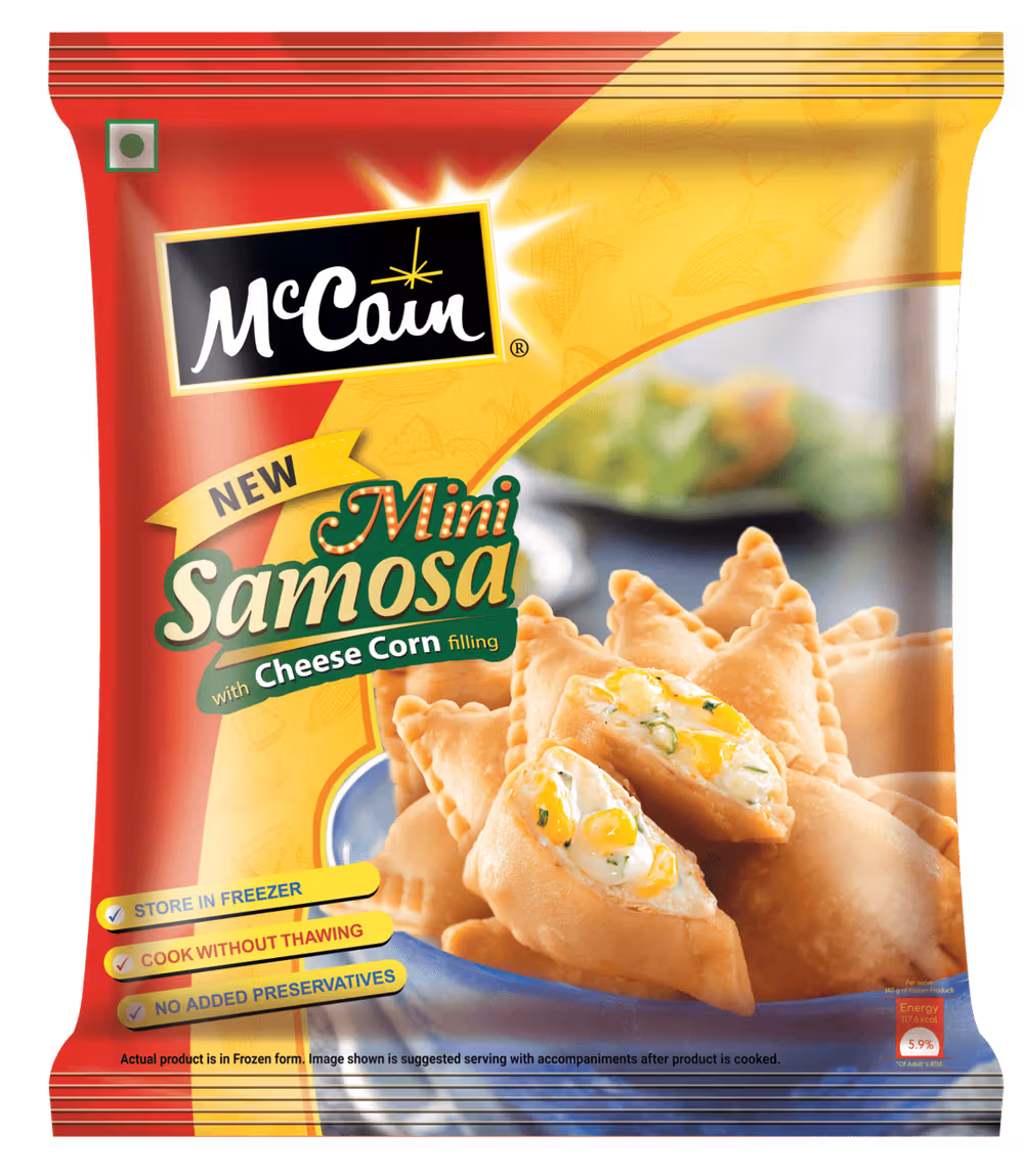 McCain cheese corn filling mini samosas are a combination of cheese and corn, crunchy on the outside and gooey on the inside. This is an excellent snack for any time of day