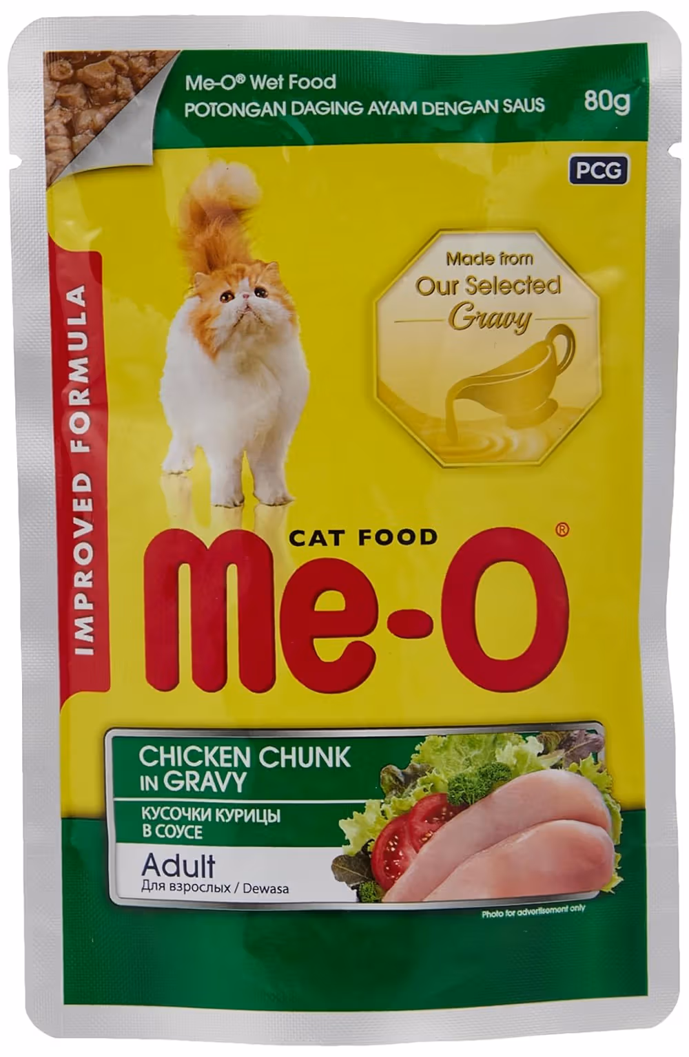 Chicken, Chicken By-product, Colouring Agent, Flavouring Agents, Taurine, Thickening Agent, Vegetable Proteins, and Wheat Flour
