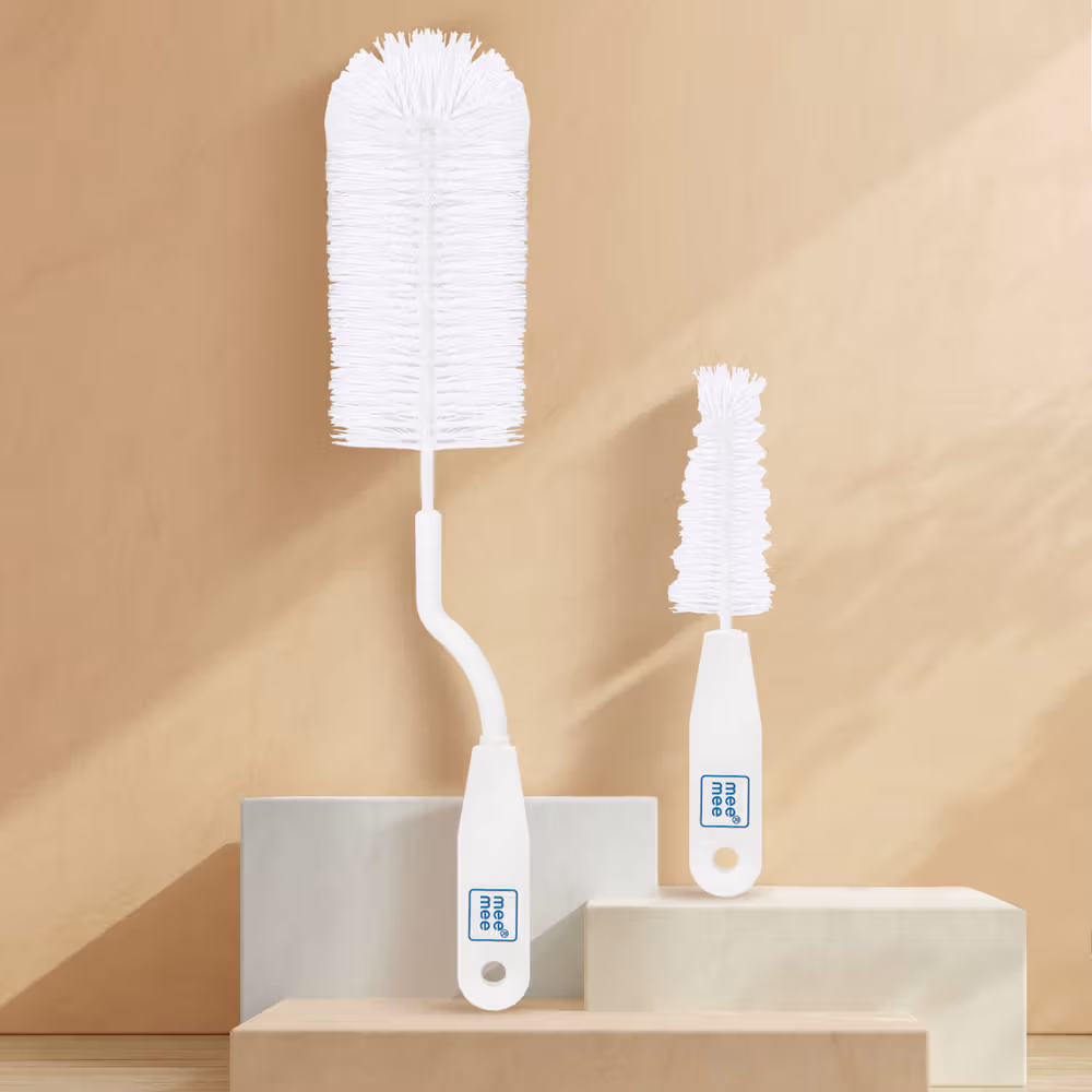 360-degree rotary handle, durable nylon bristles, ergonomic design for easy grip, ideal for bottles and nipples