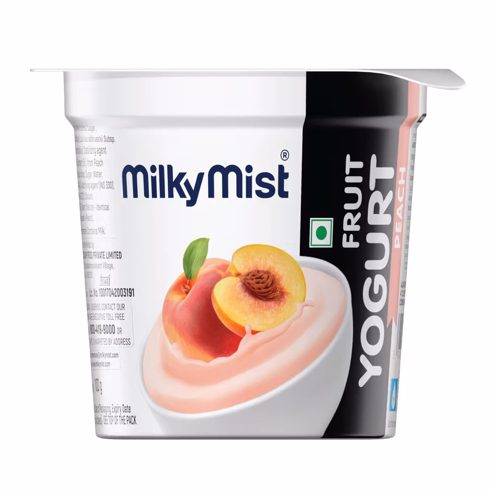 Milk and Milk Solids, Sugar, Active Lactic Culture (L.Bacillus Delbrueckii Subsp. Bulgaricus, S.Thermophilus), Stabilizing Agent (INS 440), Fruit Content (6%) From Peach Preparation (Peach Dices, Sugar, Water, Stabilizer (INS 440), Acidifying Agent (INS 330), Preservative (INS 202)), Colours (INS 102, INS 110), Flavor (Nature - Identical Flavoring Substances - Peach)