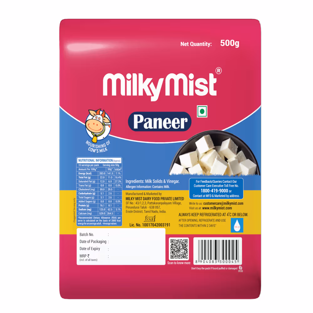Milky Mist Dairy Food Private Limited (MMD), SF No. 43/1,2,3, Pattakaranpalayam, Revenue Village, Perundurai-Tk 638 057, Erode, Tamil Nadu, India.