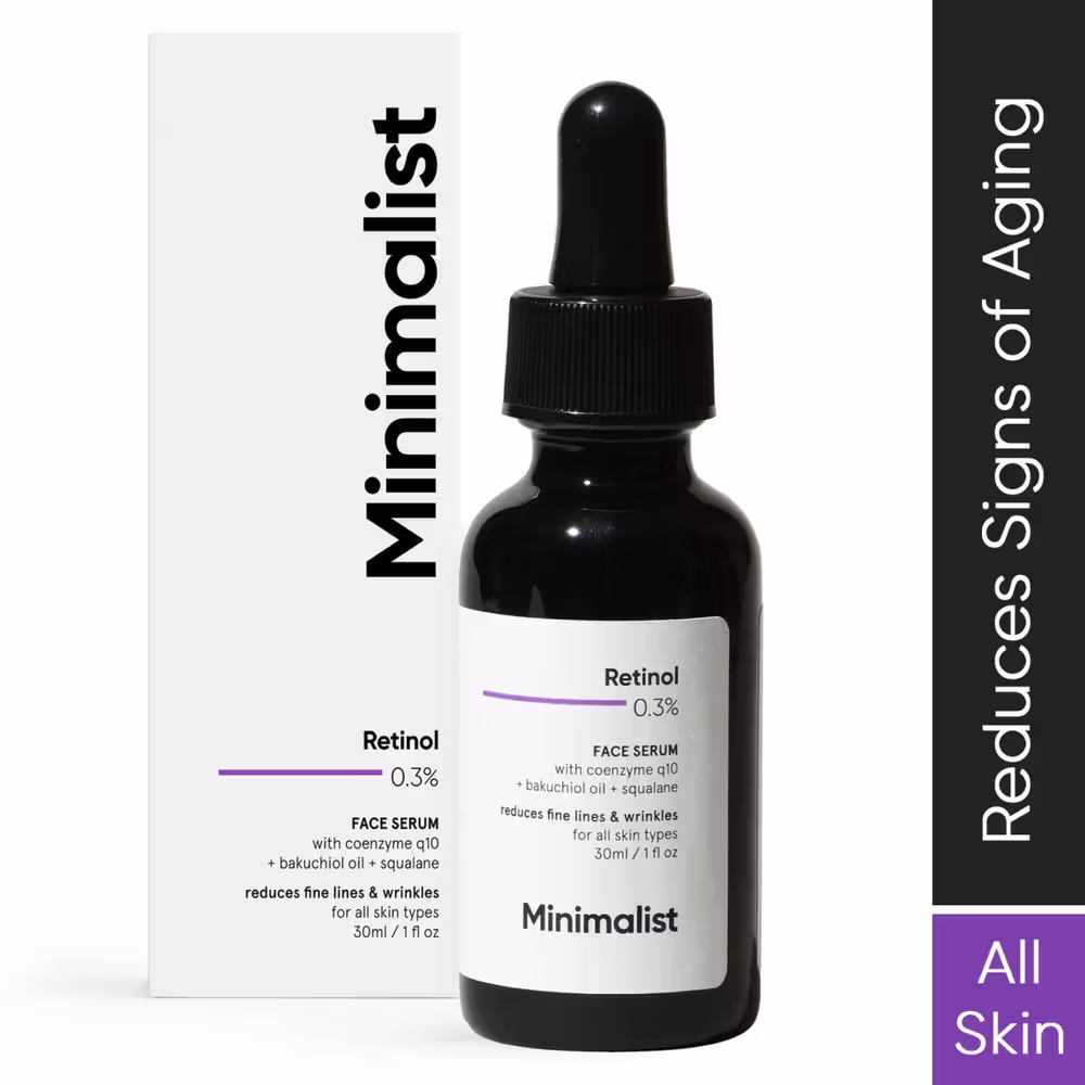 Squalane, Retinol (0.3%), Coenzyme Q10, Bakuchiol Oil (1%), Tocopherol (Vitamin E)