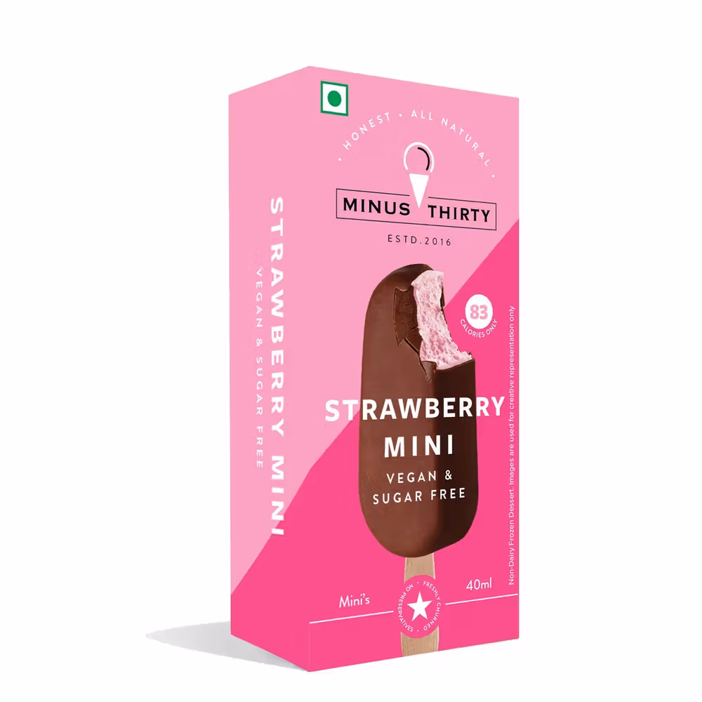 Each mini stick features creamy strawberry-flavored ice cream coated in a decadent dark chocolate shell crafted without animal products or added sugars. It offers a delightful treat for those seeking a wholesome option