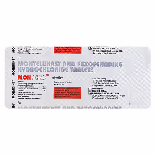 A combination of a leukotriene receptor antagonist and an antihistamine used for the management of allergic rhinitis (hay fever) symptoms. It helps relieve sneezing, runny nose, itchy/watery eyes, and nasal congestion by blocking two different pathways involved in allergic response. It can be taken with or without food. Side effects could include nausea, diarrhea, vomiting, flu-like symptoms, headache and dizziness.
