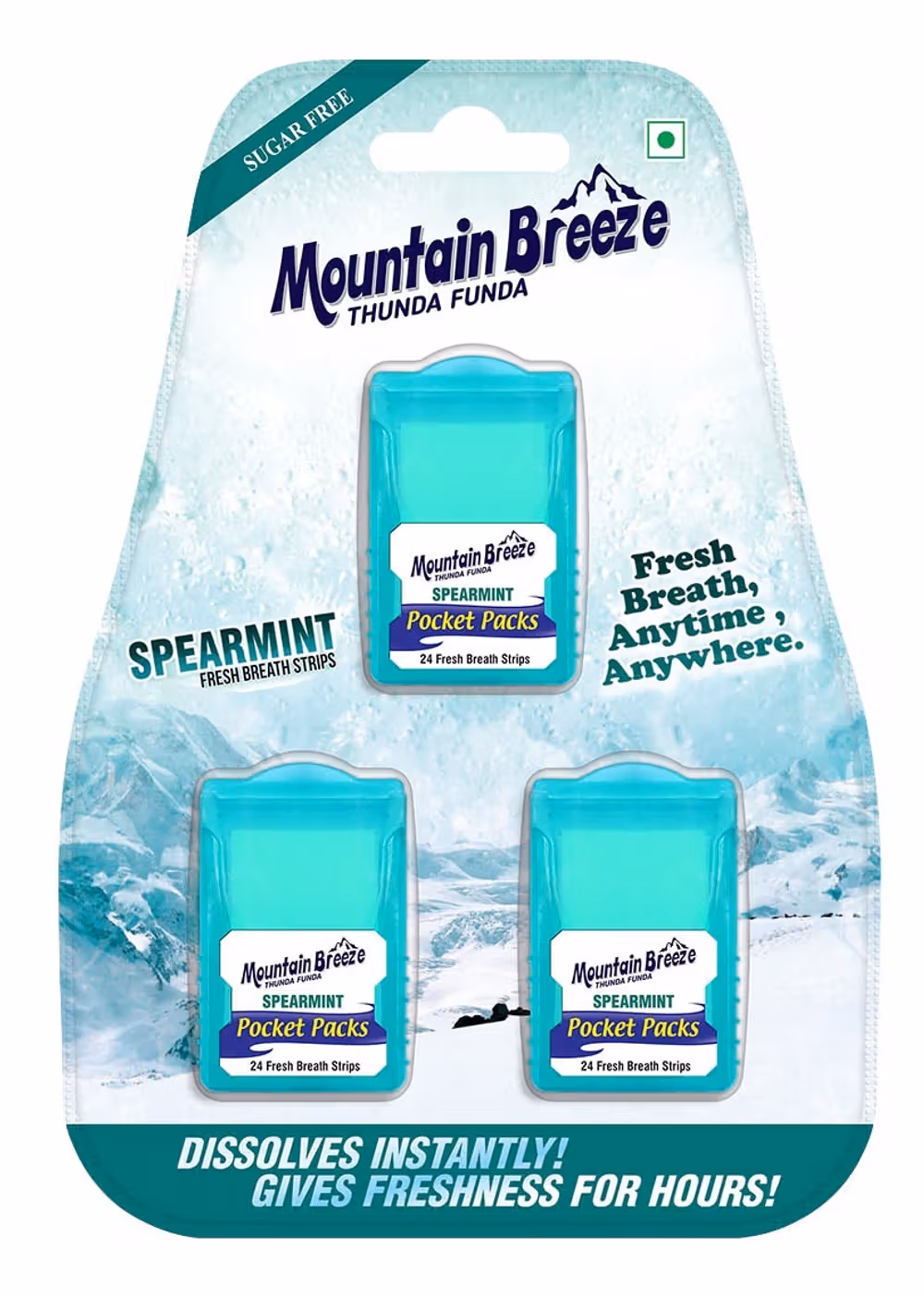Sugar-free spearmint flavored mouth freshener strips that dissolve instantly in your mouth, giving you a refreshing breath and a cool taste