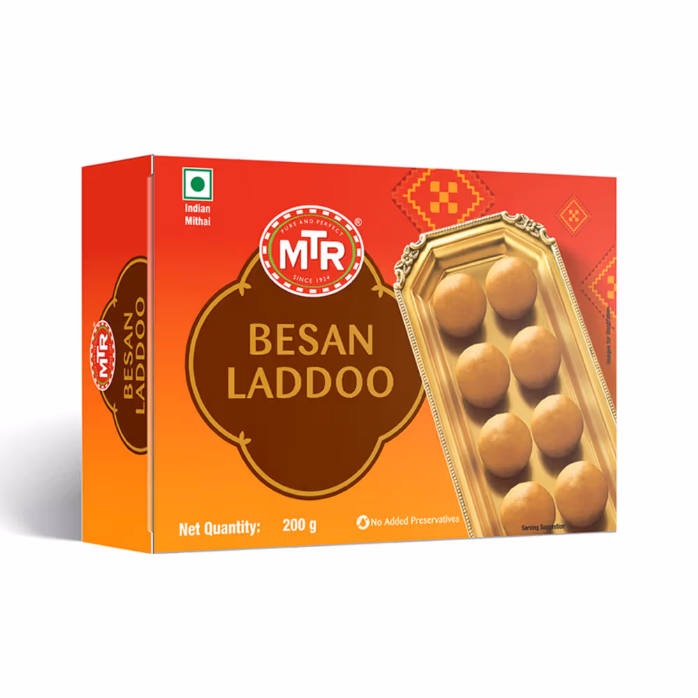 Besan (37%), Bura sugar, Ghee (13%), Copra (Dry coconut), Peanut (5%) and Cardamom powder