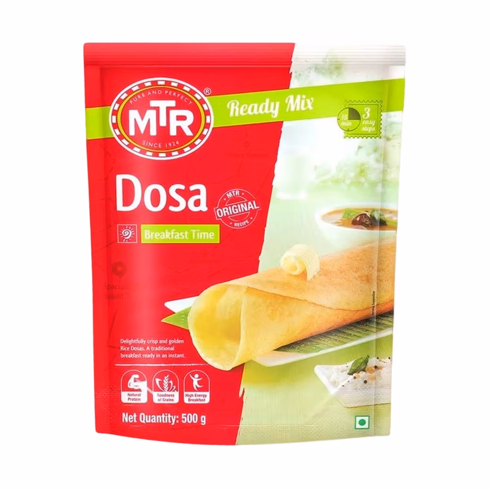 Rice flour (46%), Blackgram Dal (27%), Refined Wheat Flour, Edible Vegetable fat-interesterified (Palm Oil and Palm kernel oil), Salt, Leavening agent: Sodium bicarbonate (INS 500(ii)), Acidity Regulator: Malic Acid (INS 296), Fenugreek