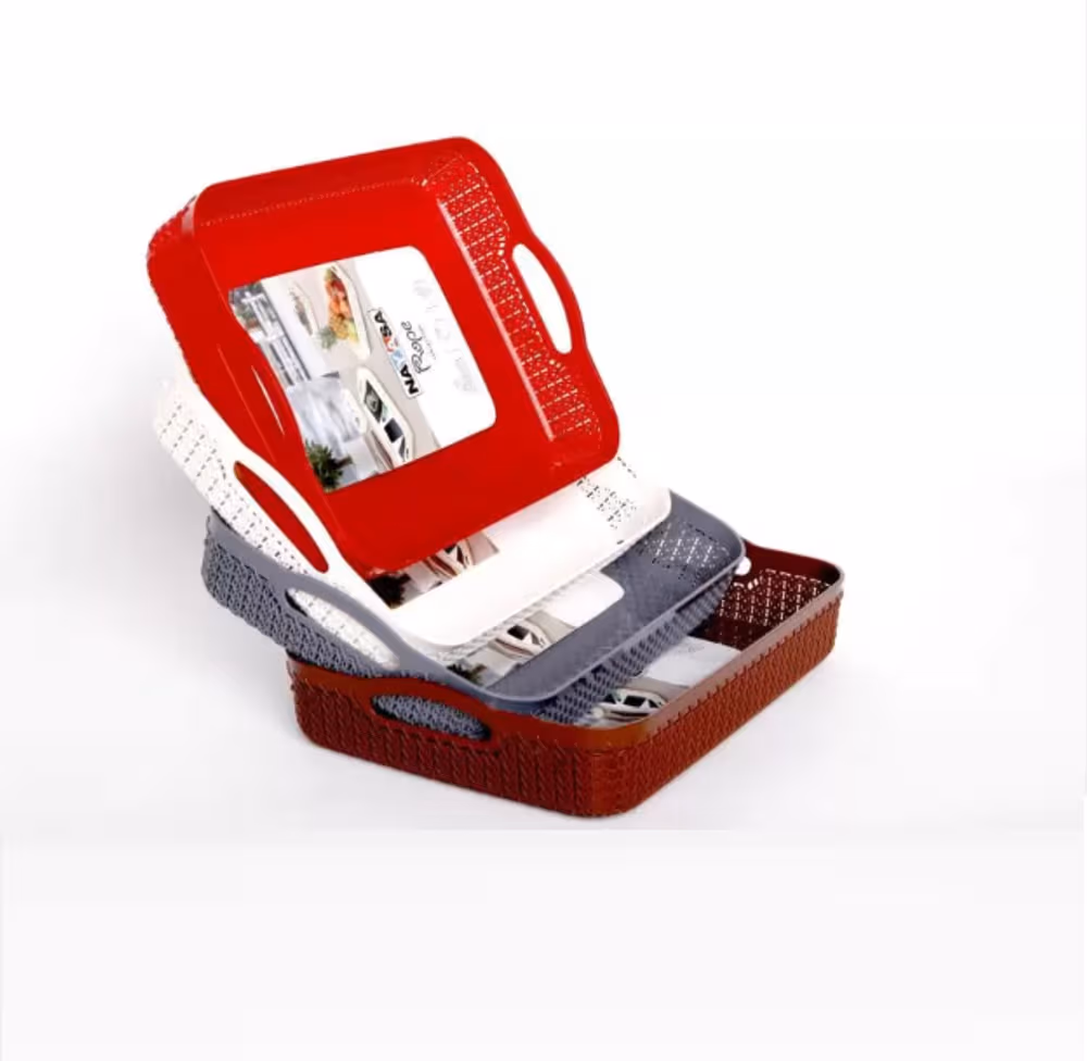 Stylish rope design, durable plastic material, assorted colors for variety, perfect for organizing essentials