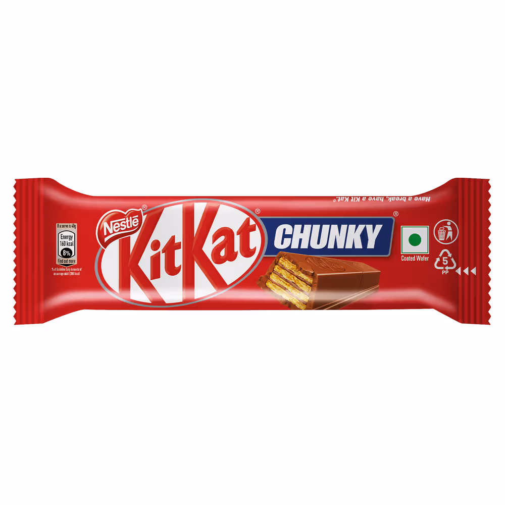 Elevate your break with KitKat Chunky Chocolate Coated Wafer Bar. Enjoy the satisfying crunch of a crispy wafer coated in smooth milk chocolate. It is the perfect indulgence for a bigger and crunchier bite