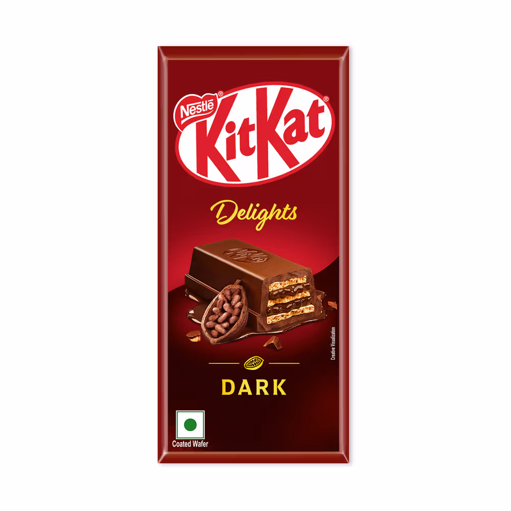 Kitkat delights- experience the delight in every bite with kitkat delights dark. Dark chocolate - coated wafer - kitkat delights dark where layers of intense dark chocolate coating meet crispy wafer